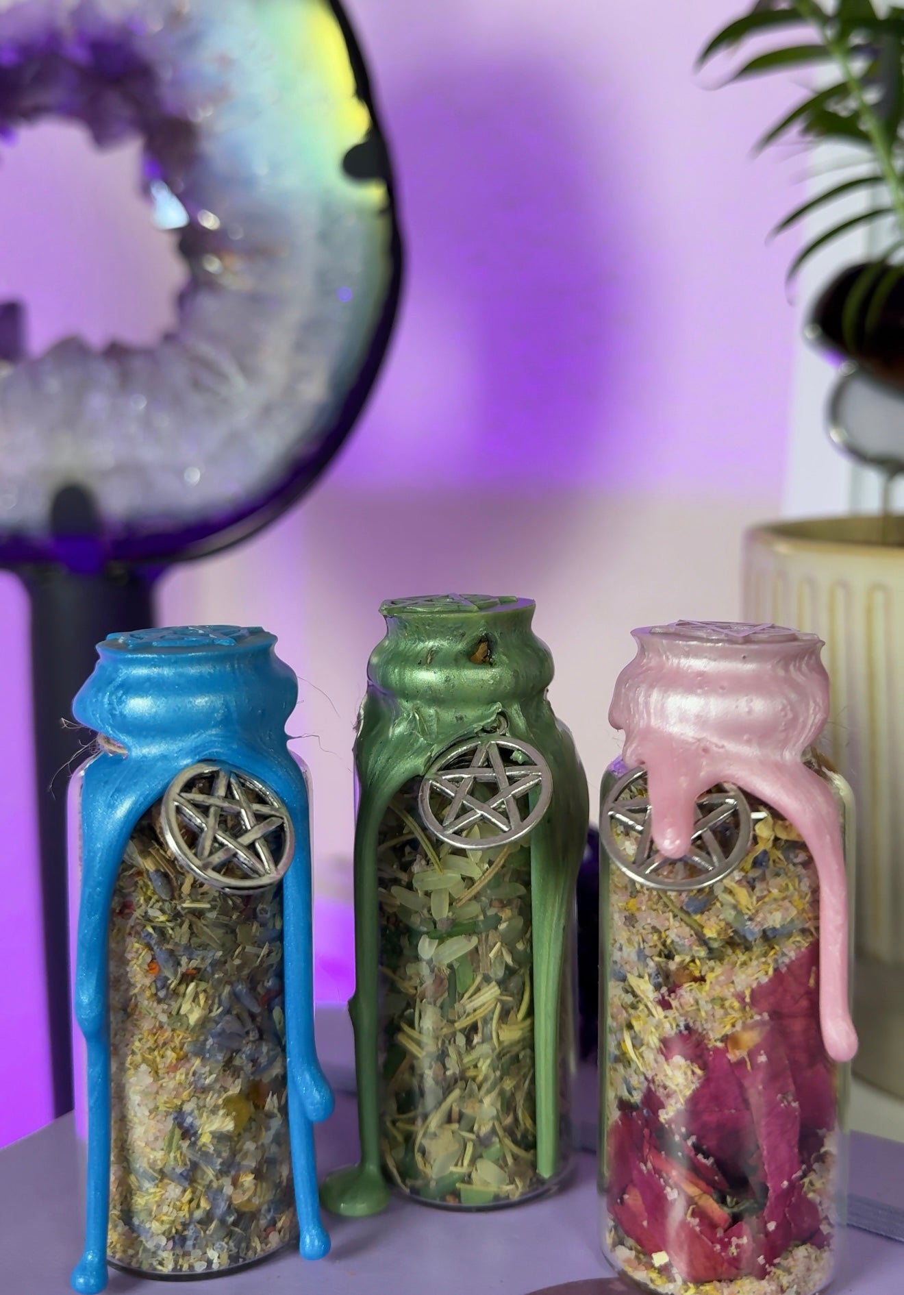 Elevate your spiritual practice with our Best Selling Spell Jar Bundle! With over 15,000 sold individually, my love, money, and protection spell jars bring powerful and proven results. Boost your energy and manifest your desires with this winning combination. Limited availability, get yours today!