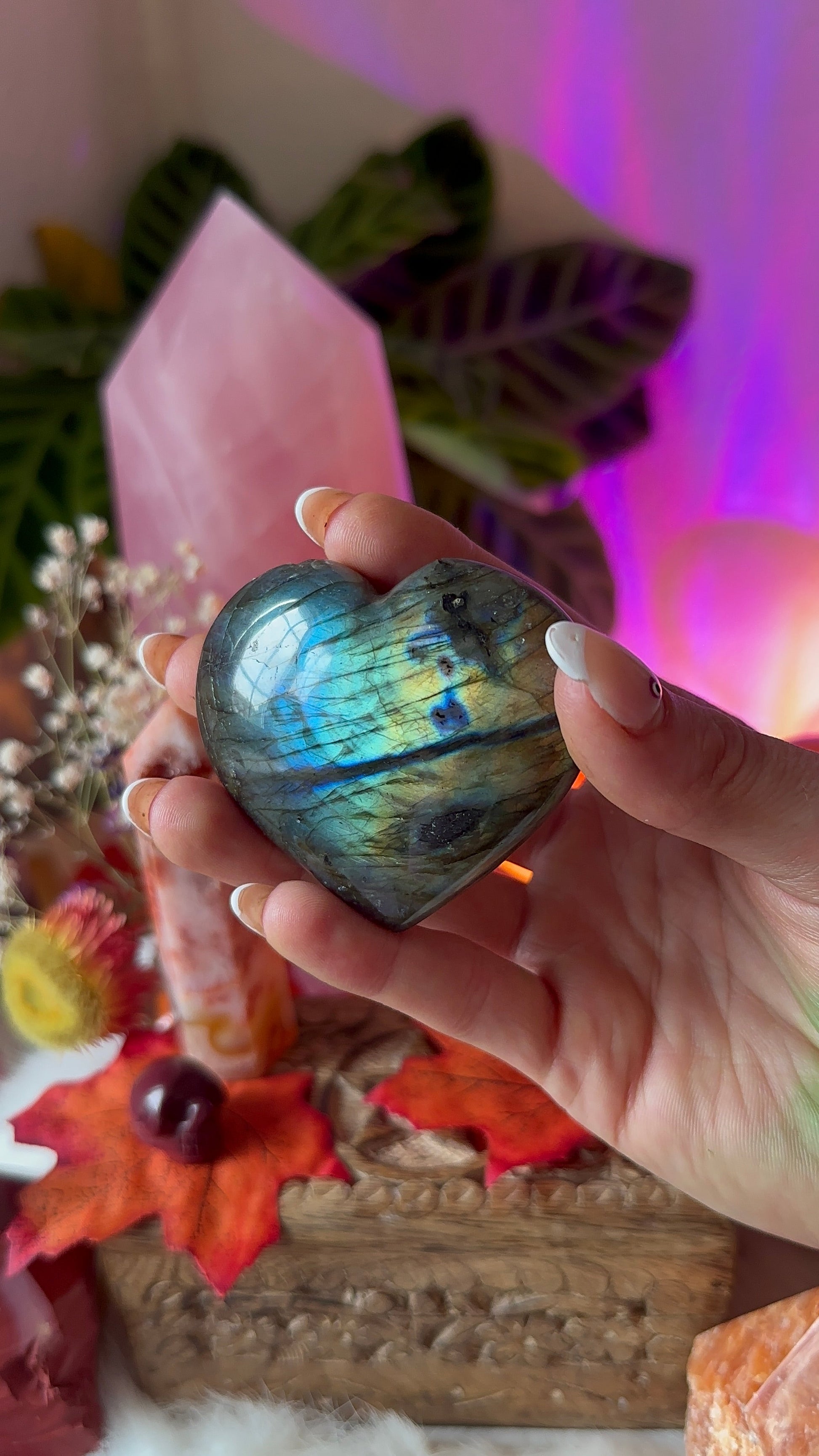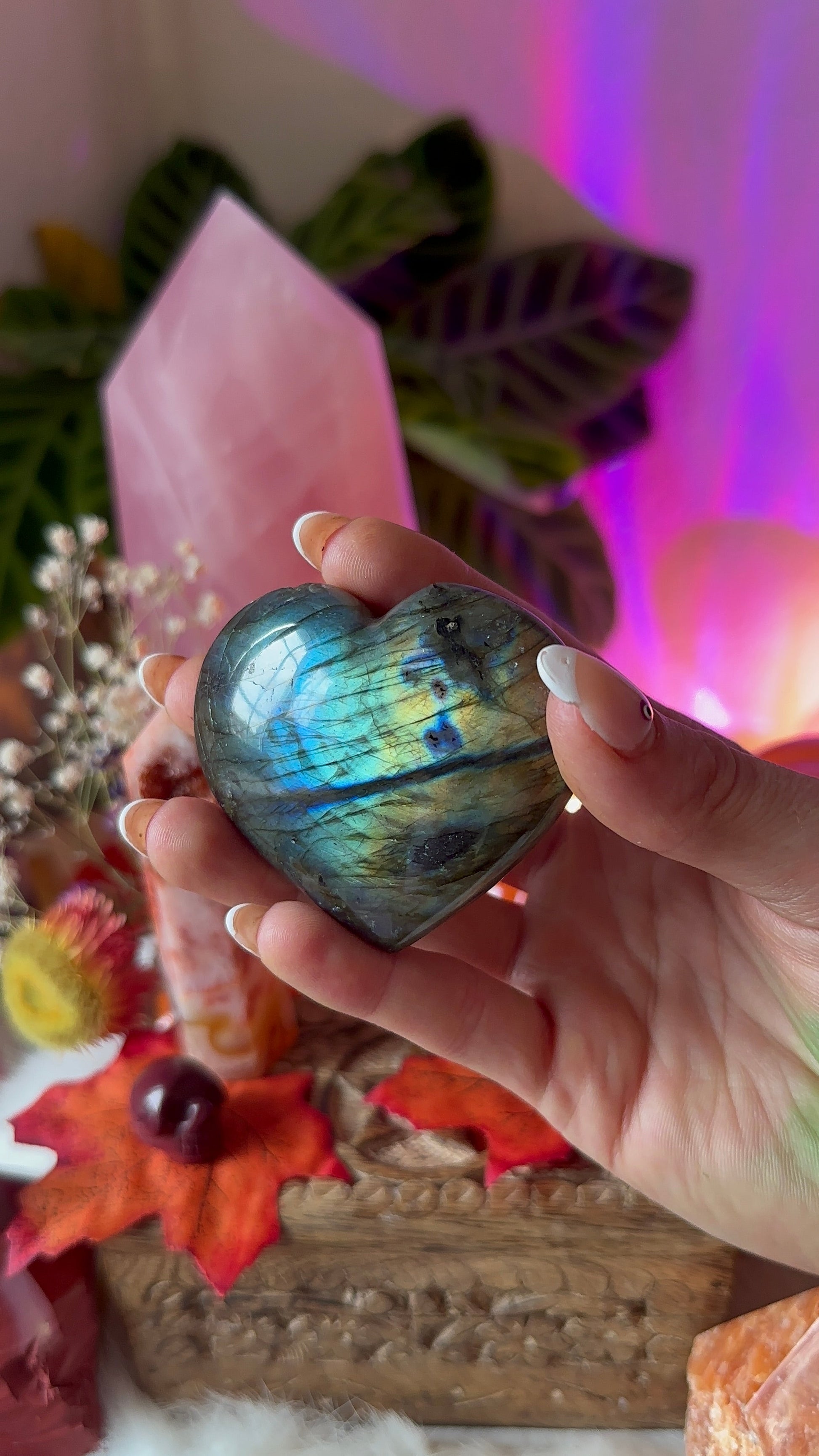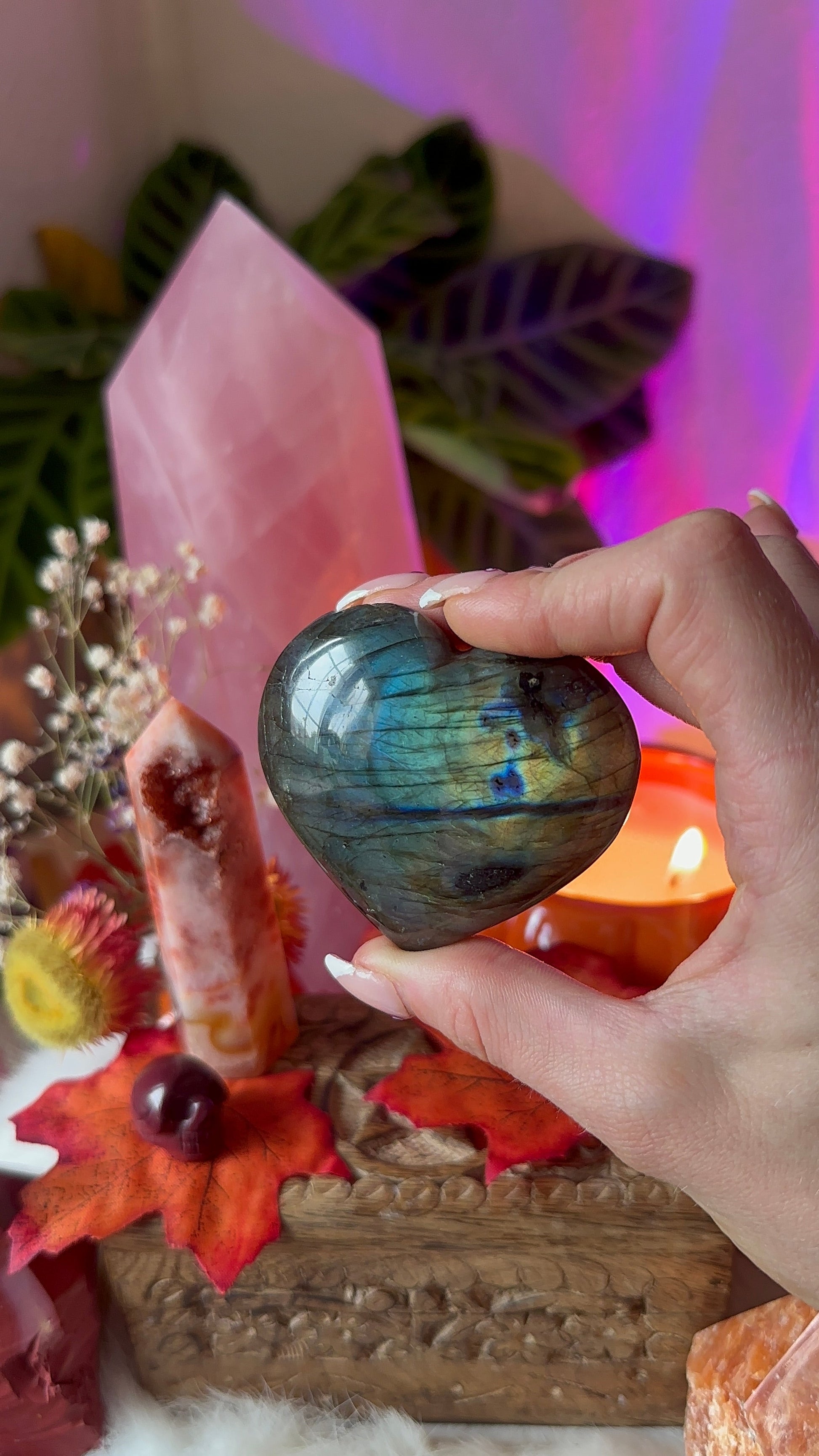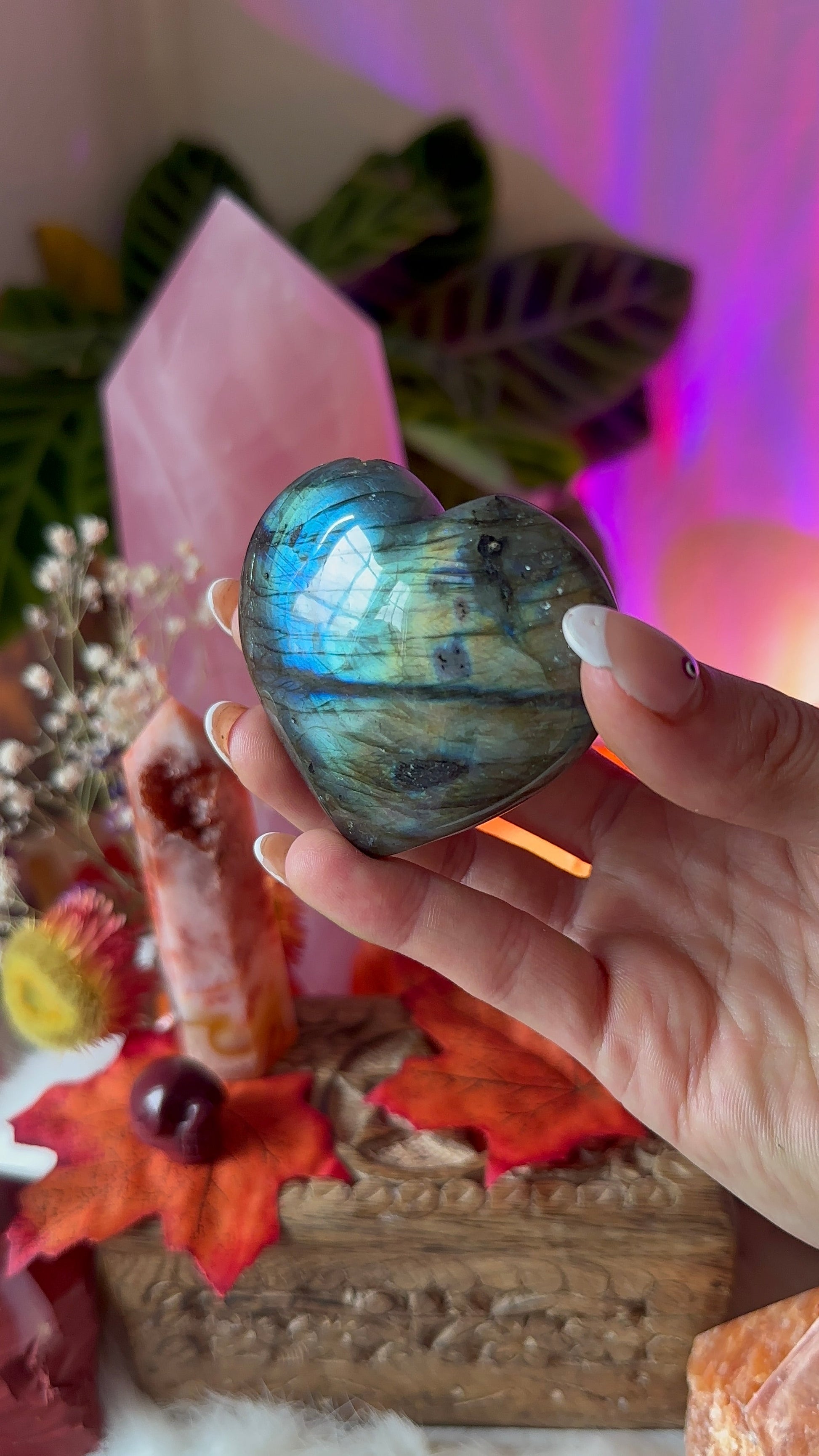 Labradorite relieves anxiety and stress. Mental acuity. Spiritual ability. Deeper connections. Energy healing and Chakra balancing. Regain energy. Embrace limitless potential. Tap into a higher state of consciousness.