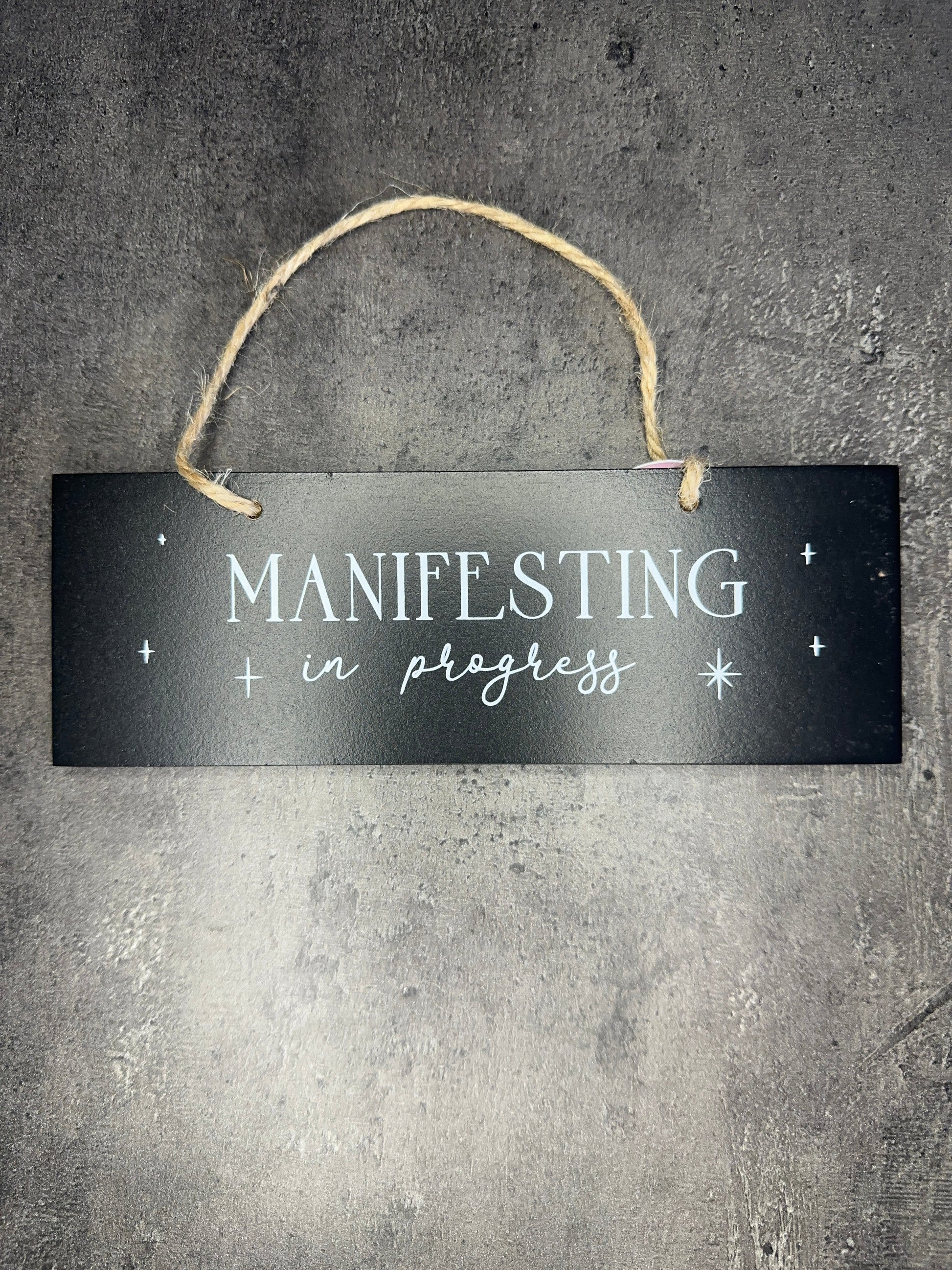 Keep your sacred space undisturbed with this charming ‘Manifesting in Progress’ hanging sign. Inspired by the popular crystal healing trend, it’s perfect for letting others know you’re in the middle of spellcasting, meditation, or manifestation work. A fun and practical addition to any spiritual space.