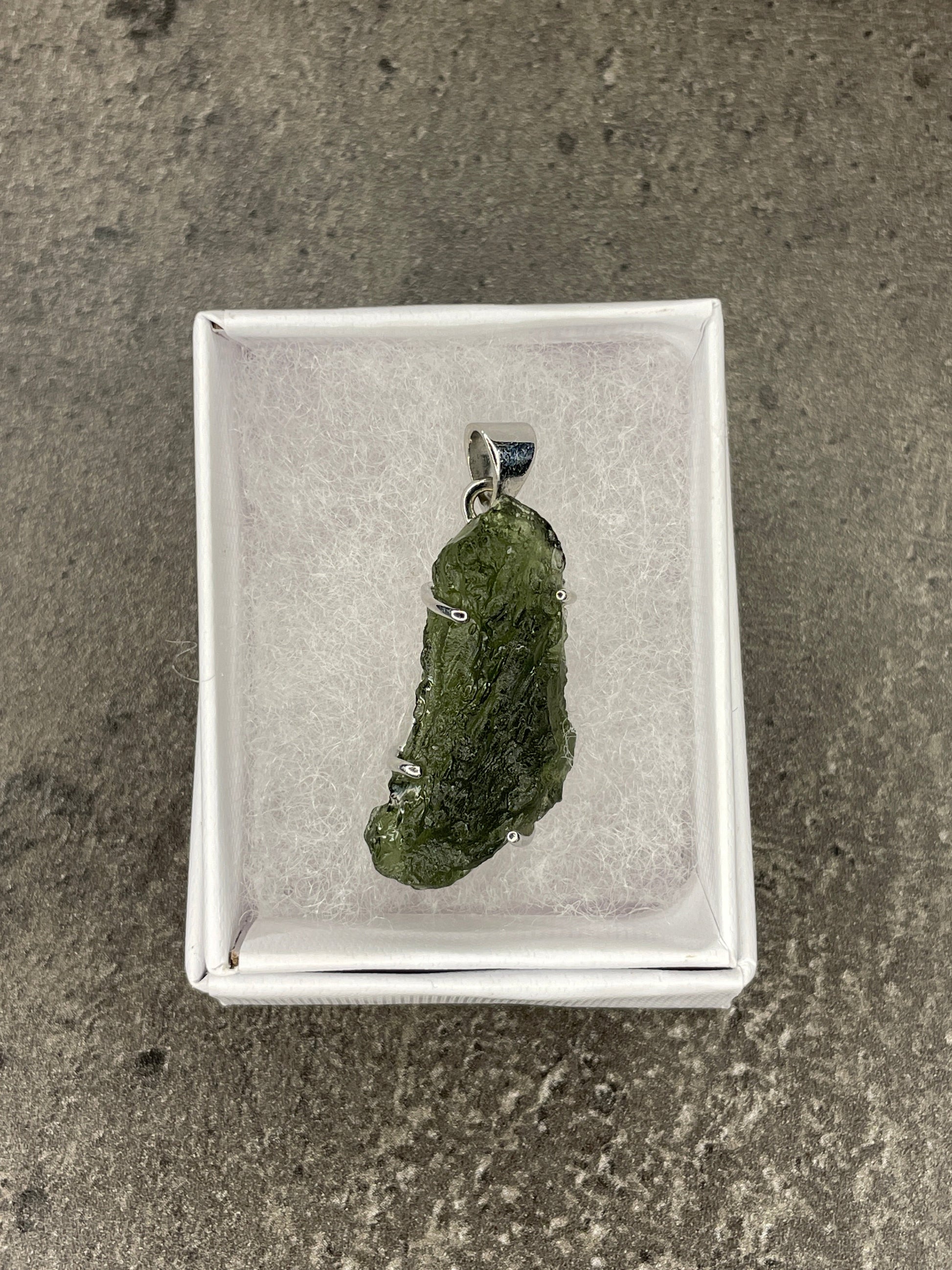 All of our Moldavite is genuine, ethically sourced and authentic from a family-ran mine we work with in the Czech Republic. Please check out our FAQ page for information on this. Please note: These pendants are made with 925 Sterling silver - the selection you choose is the pendant you will receive.