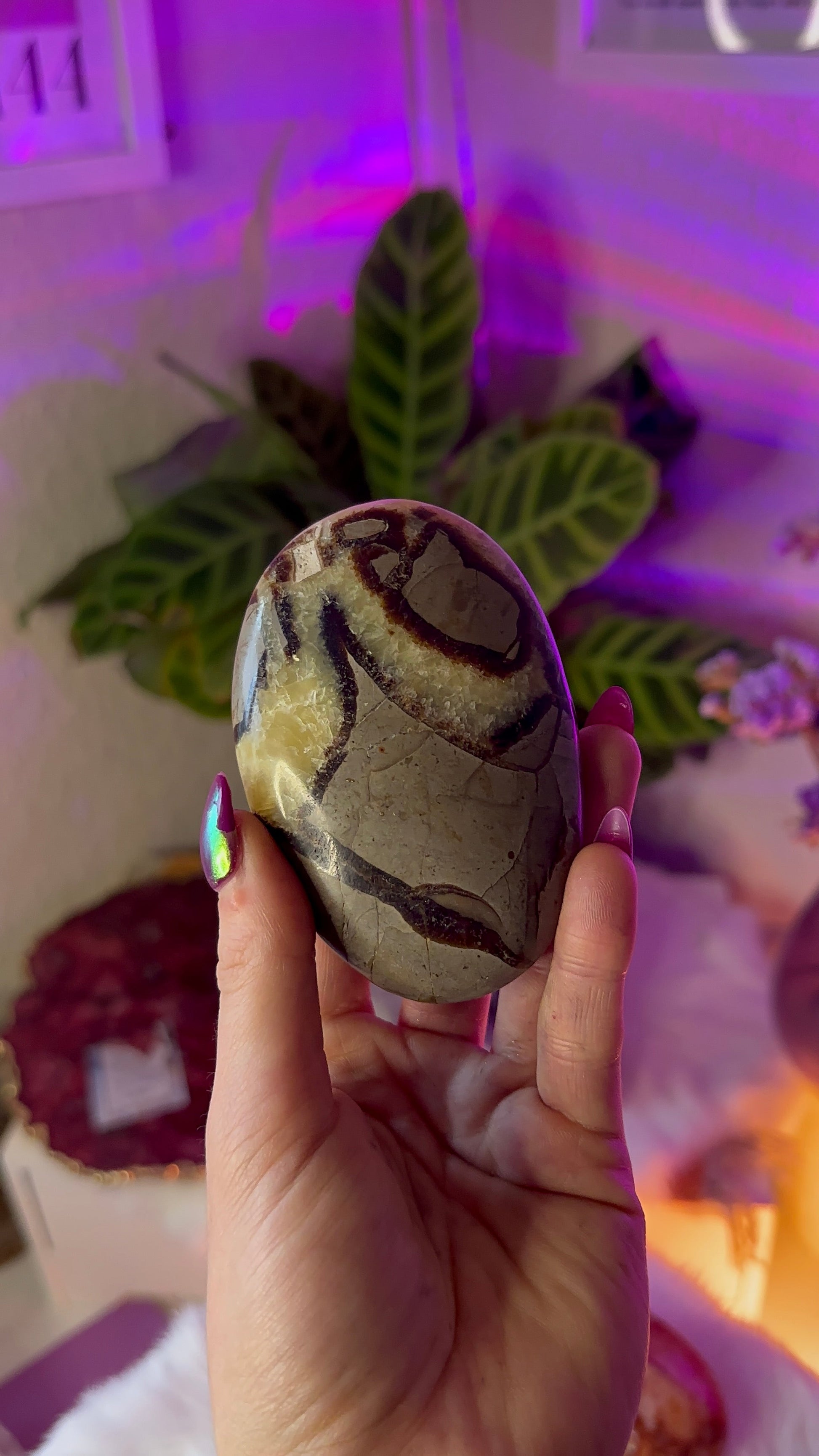 A grounding stone, Septarian allows for better tolerance and patience, as well as emotional flexibility. It can gauge the underlying cause of an illness when meditated upon, and focuses the body into healing itself. Septarian absorbs energy when held over a period of time, and transmits that energy into strength when needed. Septarian opens, heals, and activates the Root Chakra. It is associated to the steady persistence of Taurus.