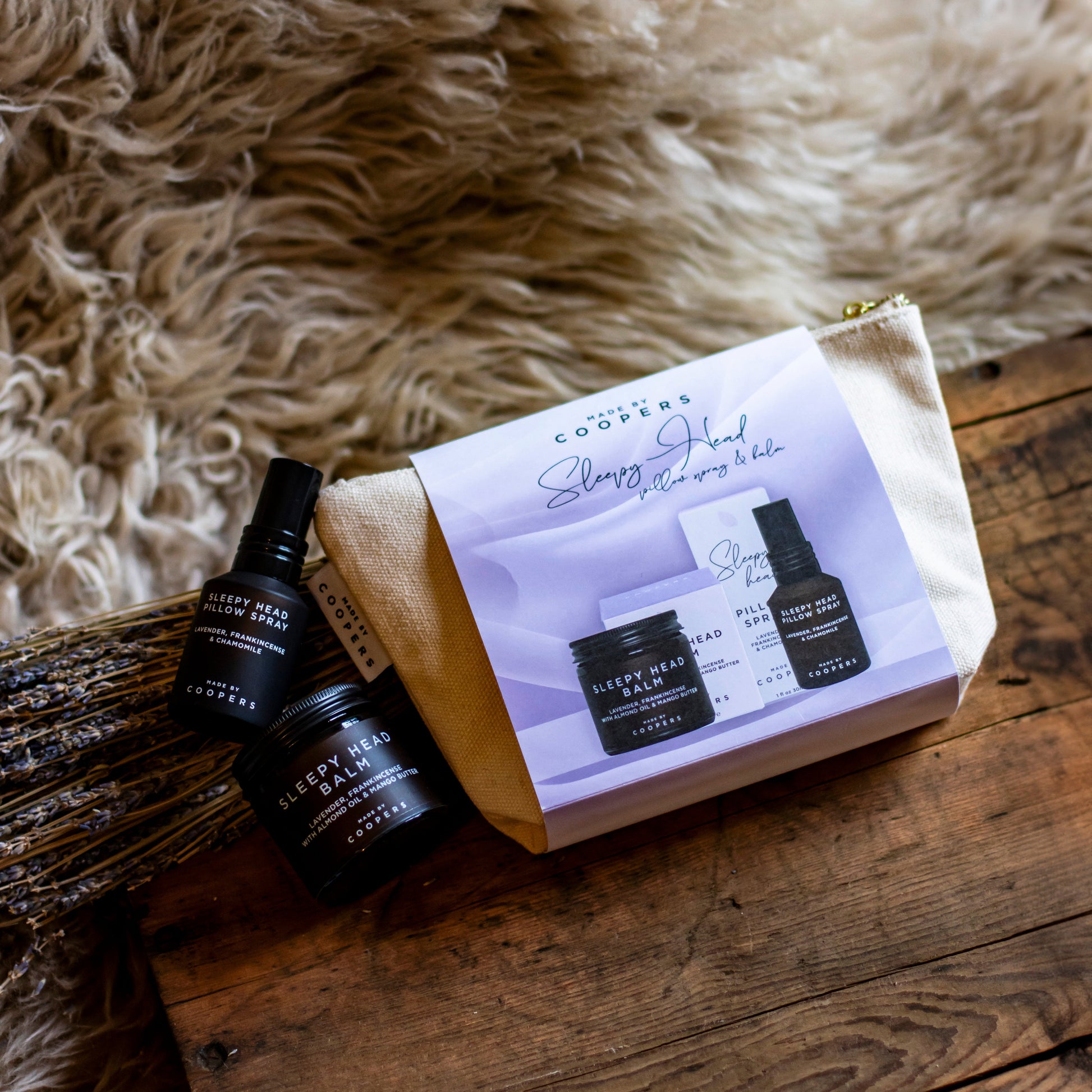 Enjoy our award-winning pillow spray and balm to relax your mind, nourish your skin, and help ease you into a deep slumber.