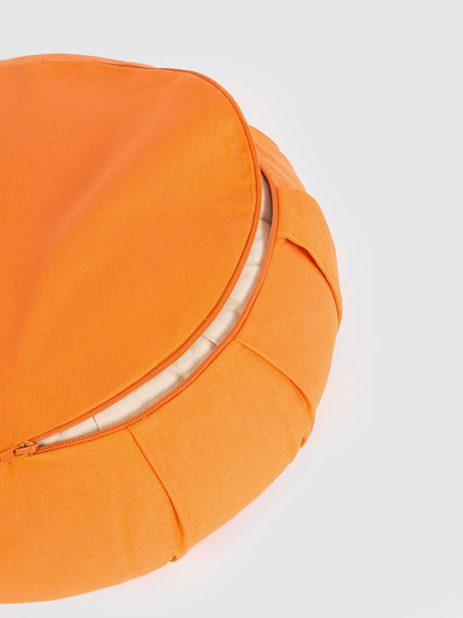 - The Crescent Zafu Cushion is filled with 100% Organic Buckwheat hulls and has a convenient handle to carry the cushion.