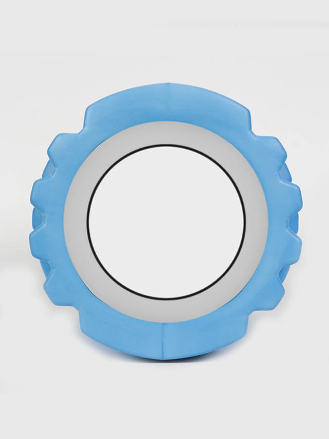 The surface features an innovative design that allows for more targeted massage compared to regular foam rollers. Grooves act like the hands of a sports masseuse for deeper penetrating myofascial release.